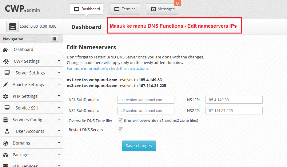 - Setting nameservers CWP